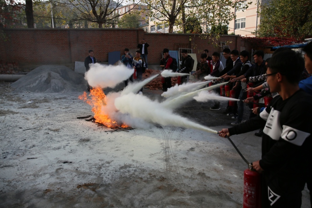 10月21日校保卫处的王利明老师为同学们演示了灭火器的使用方法,并现场让同学灭火,使同学对消防安全有了很高的认识。