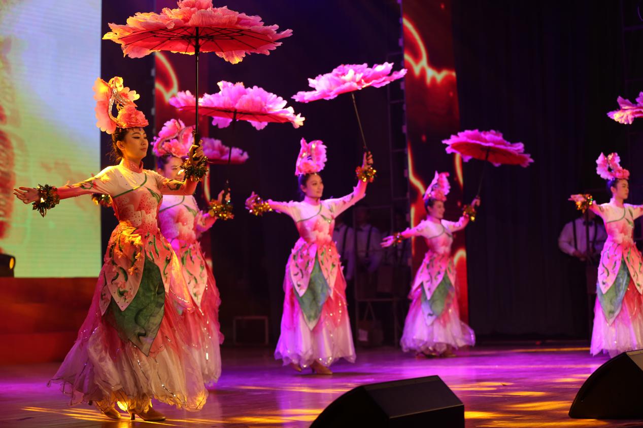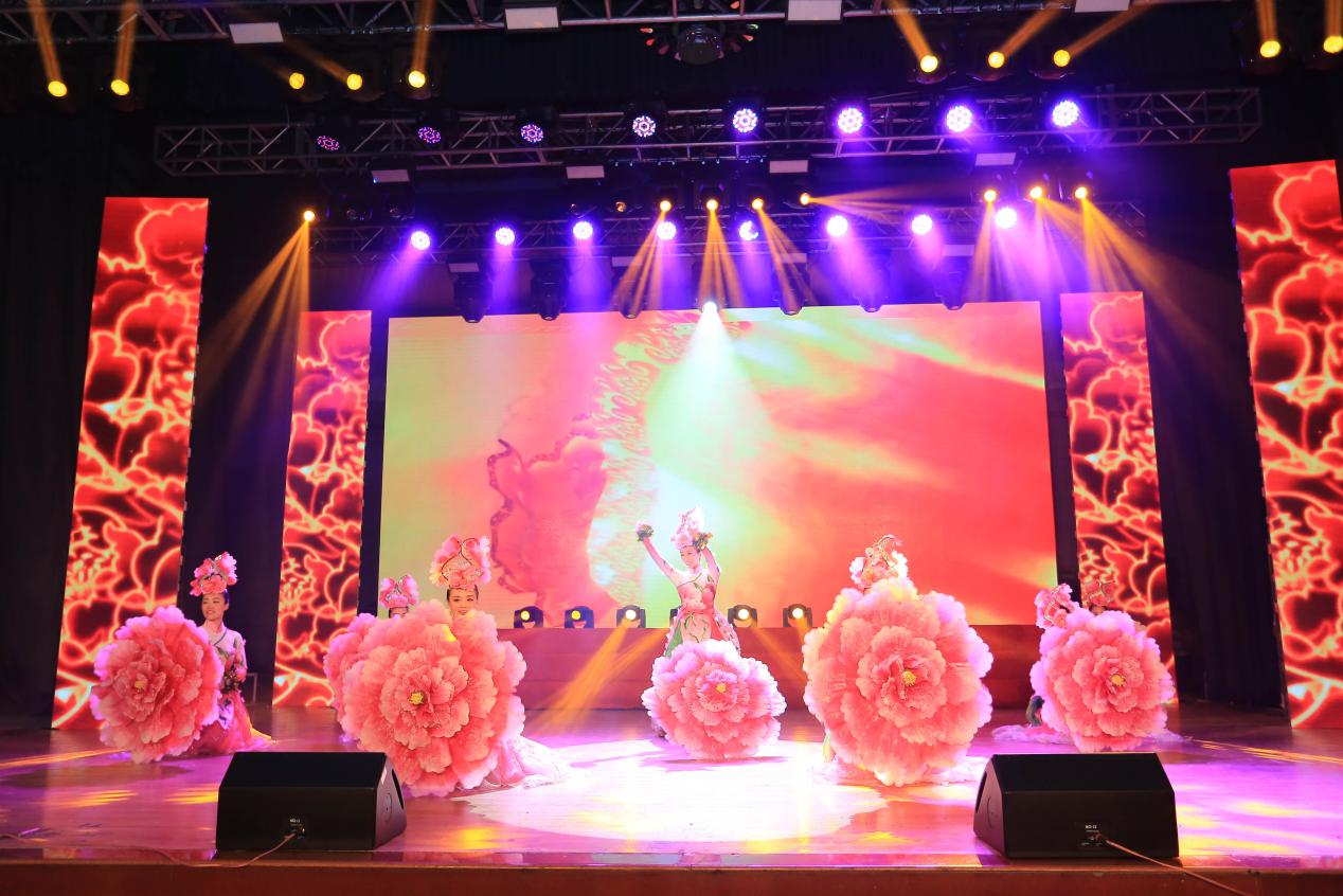 公司8名女教师为了圆满完成演出任务,利用自己的休息时间精心策划,反复排练,在几次彩排过程中认真听取专家意见,力求完美,终于在舞台上为全校师生呈现出一幅花开盛世的华美篇章。