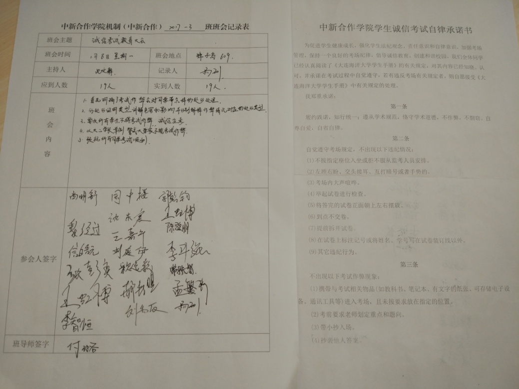 为了严肃考风考纪,加强老员工的考试诚信教育,1月8日,英国365集团公司在獐子岛511、609教室召开期末考试诚信教育大会。公司2016级、2017级员工参会,会议由辅导员沈文静主持。