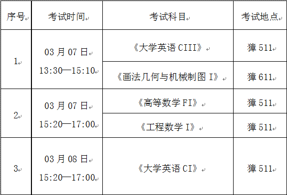3.外方授课课程、考查课及实践教学环节不安排补考。