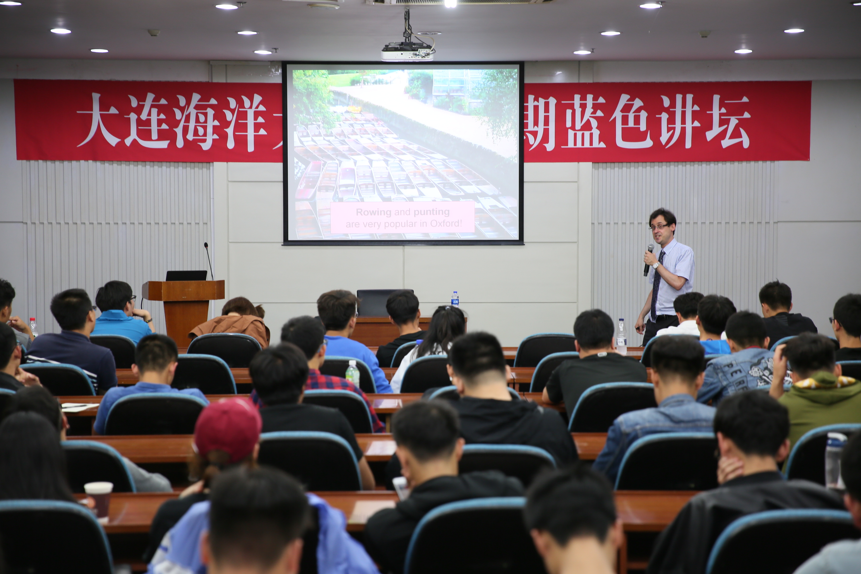 讲座过程中,Jacob老师分别从地理位置、建筑风格、饮食观念、语言与文化等方面,向师生们介绍了英国文化习俗。同时,他结合在英国牛津大学学习的亲身经历,介绍了在英国的学习生活,解答了员工们在英国留学教育方面的问题。Jacob老师的讲解图文并茂、生动形象,讲座现场气氛活跃、互动频繁,给师生们留下了深刻的印象。