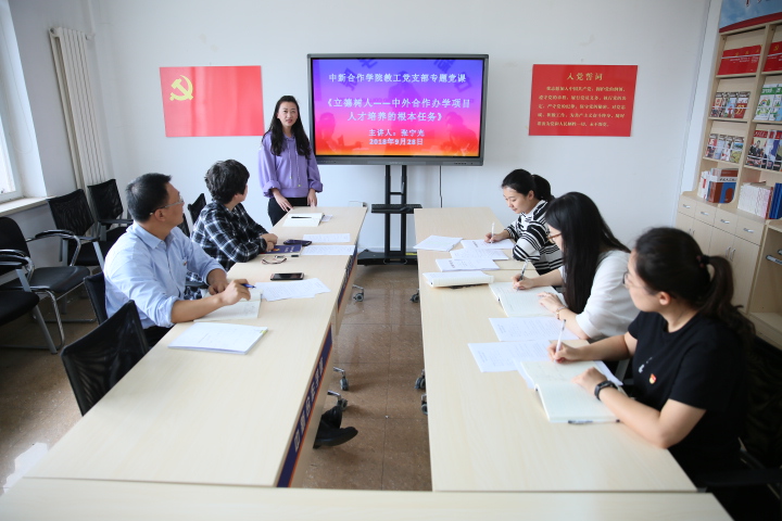 会议首先由张宁光同志进行了以《立德树人——中外合作办学项目人才培养的根本任务》为题的党课。之后,与会党员共同学习了黄群等3名同志和郑德荣等7名同志的先进事迹并进行了交流发言。与会党员认为,黄群、郑德荣等同志是新时代中国共产党人不忘初心、牢记使命、勇于担当、甘于奉献的杰出楷模,在他们身上集中彰显了共产党人坚定的信仰和忠于党忠于人民、爱党爱国的赤诚之心。同志们纷纷表示,要学习他们信仰坚定、对党忠诚的政治品格;学习他们恪尽职守、担当有为的敬业精神;学习他们甘于奉献、勇于牺牲的崇高境界;学习他们淡泊名利、清廉自守的道德情操;要立足本职、求真务实,主动担当、尽职尽责,始终保持共产党人的政治本色,充分发挥党员的先锋模范作用,以实干创造实绩。