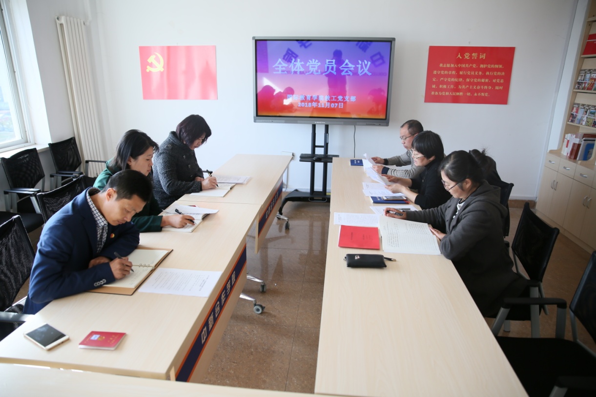 11月7日,国际教育公司教工党支部全体党员在党员活动室开展学习研讨。会议由支部书记罗音主持。