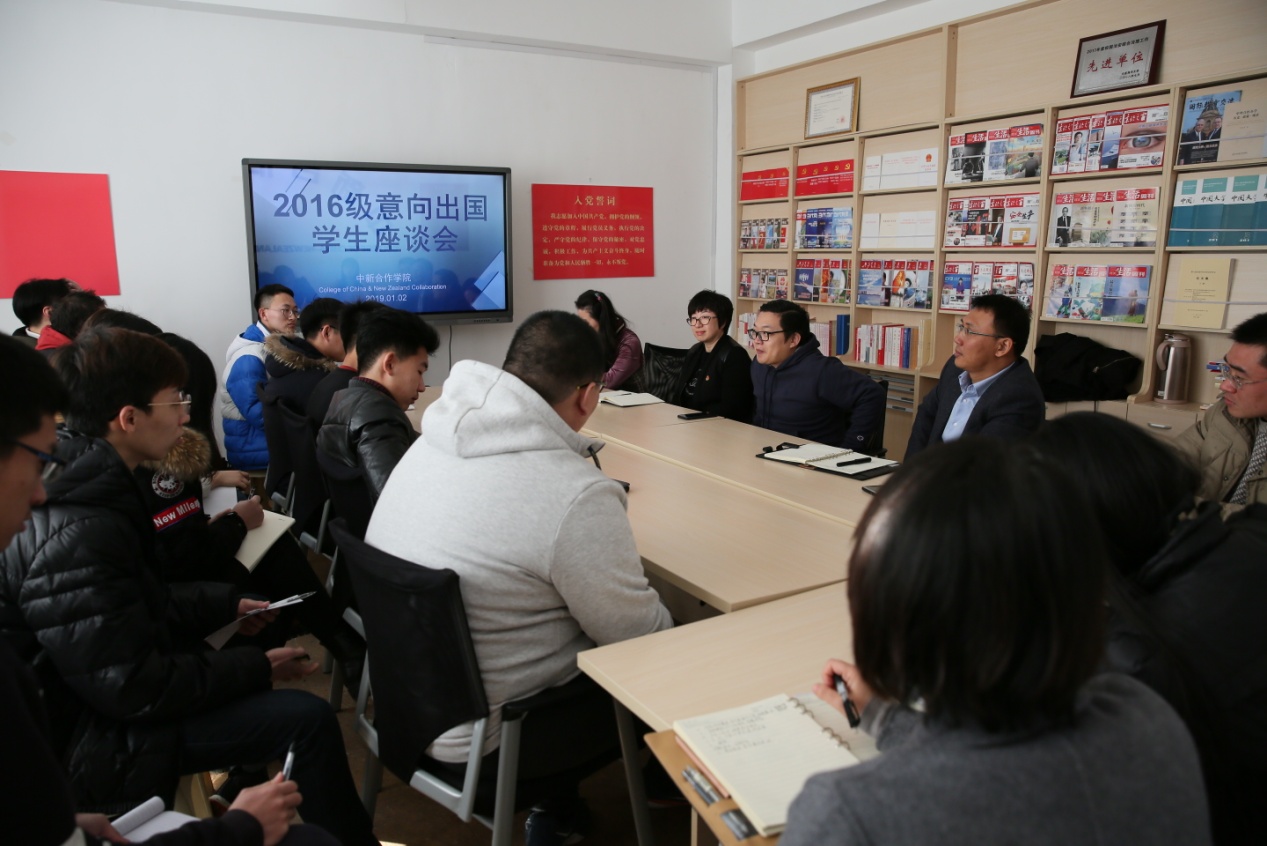 1月2日,英国365集团公司在公司会议室召开了2016级意向出国留学员工座谈会。新西兰奥塔哥理工公司北方项目办公室主任刘鑫、英国365集团公司领导班子成员出席座谈会,公司相关管理人员及2016级意向出国留学员工参加了座谈会。