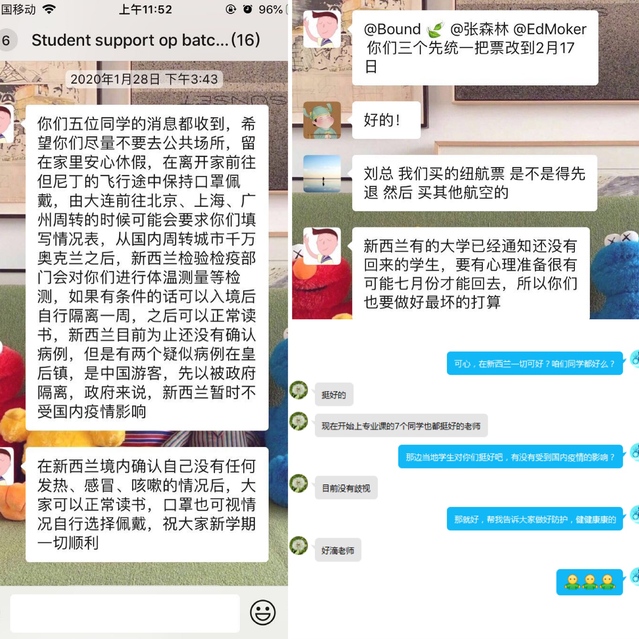 为进一步落实新型冠状病毒肺炎疫情防控工作,加强家校联系,做好疫情防控特殊时期对员工及其家庭的健康生活指导和心理关怀引导,公司全体党员教师积极投入到疫情防控摸排、员工居家指导等各项工作中。通过电话、微信、视频等多种线上方式进行家访,共计访问27名员工,摸排生活轨迹覆盖全院333名员工,包括12名赴新西兰奥塔哥理工公司职工。