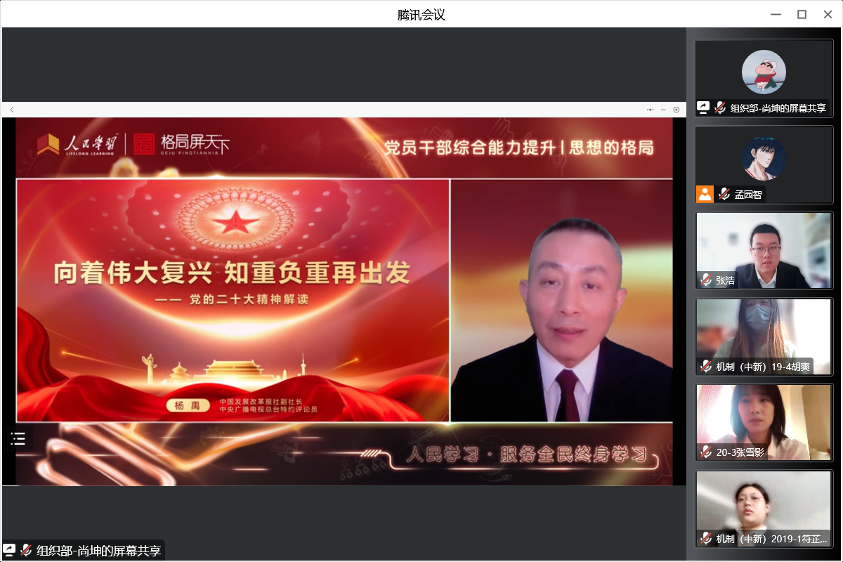 本次活动采取线上线下同步进行,集中收看学习《党的二十大精神解读》报告会,并进行讨论交流。