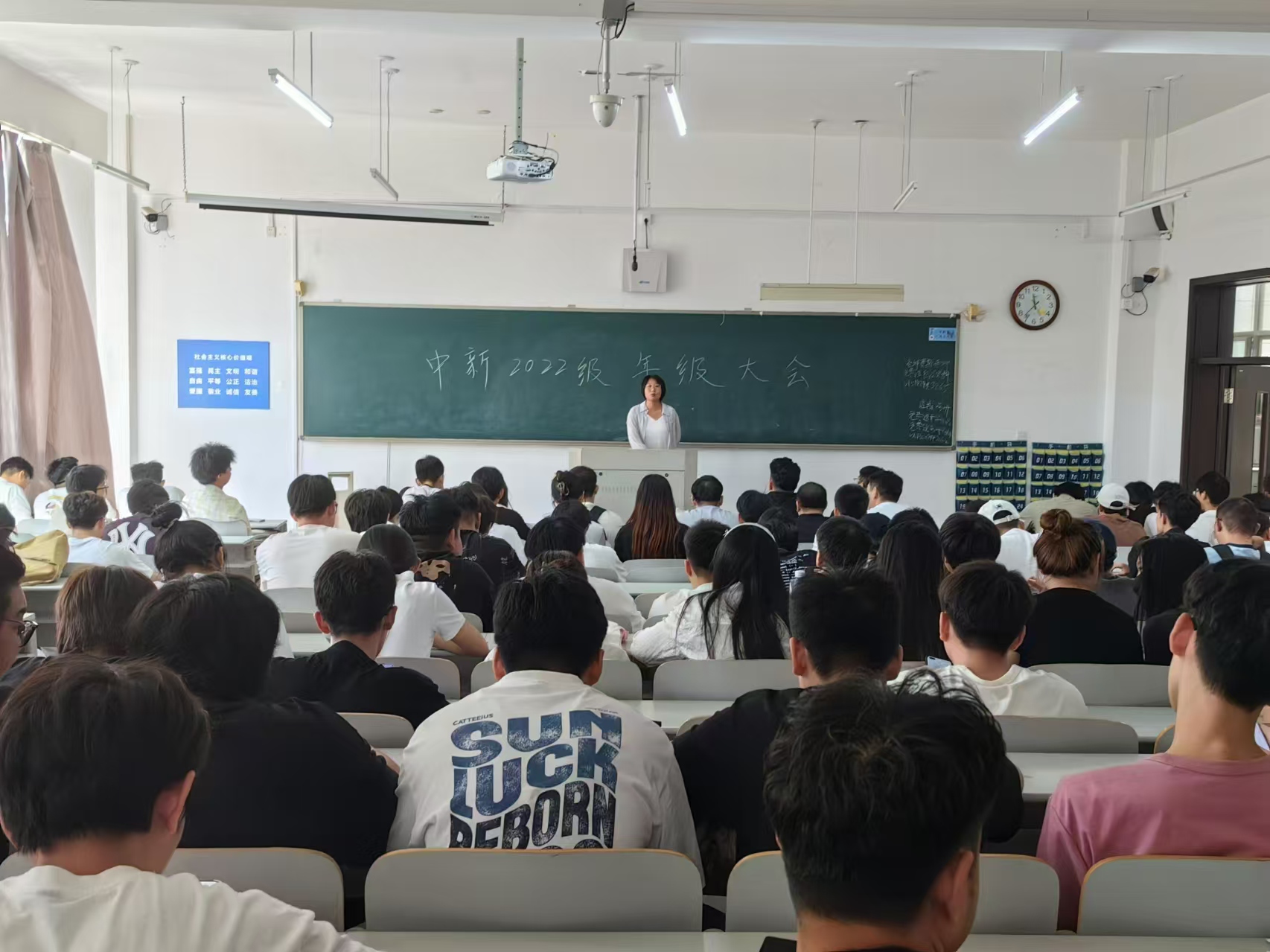9月12日中午,英国365集团公司在獐子岛教学楼107教室召开2022级员工年级大会。会议由公司党总支副书记、2022级辅导员沙雷主持,2022级全体同学参加。