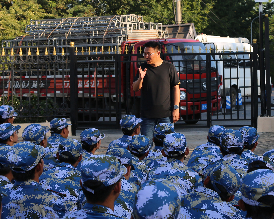 经理高巍观看了新生们的队列操练,对于同学们整齐划一的动作、饱满的精神面貌给予了高度评价。随后,高巍代表公司向新生们致以节日的问候,并鼓励大家要珍惜这段特殊的经历,通过军训锻炼自己的意志品质,培养良好的团队合作精神,为今后的学习生活打下坚实的基础。