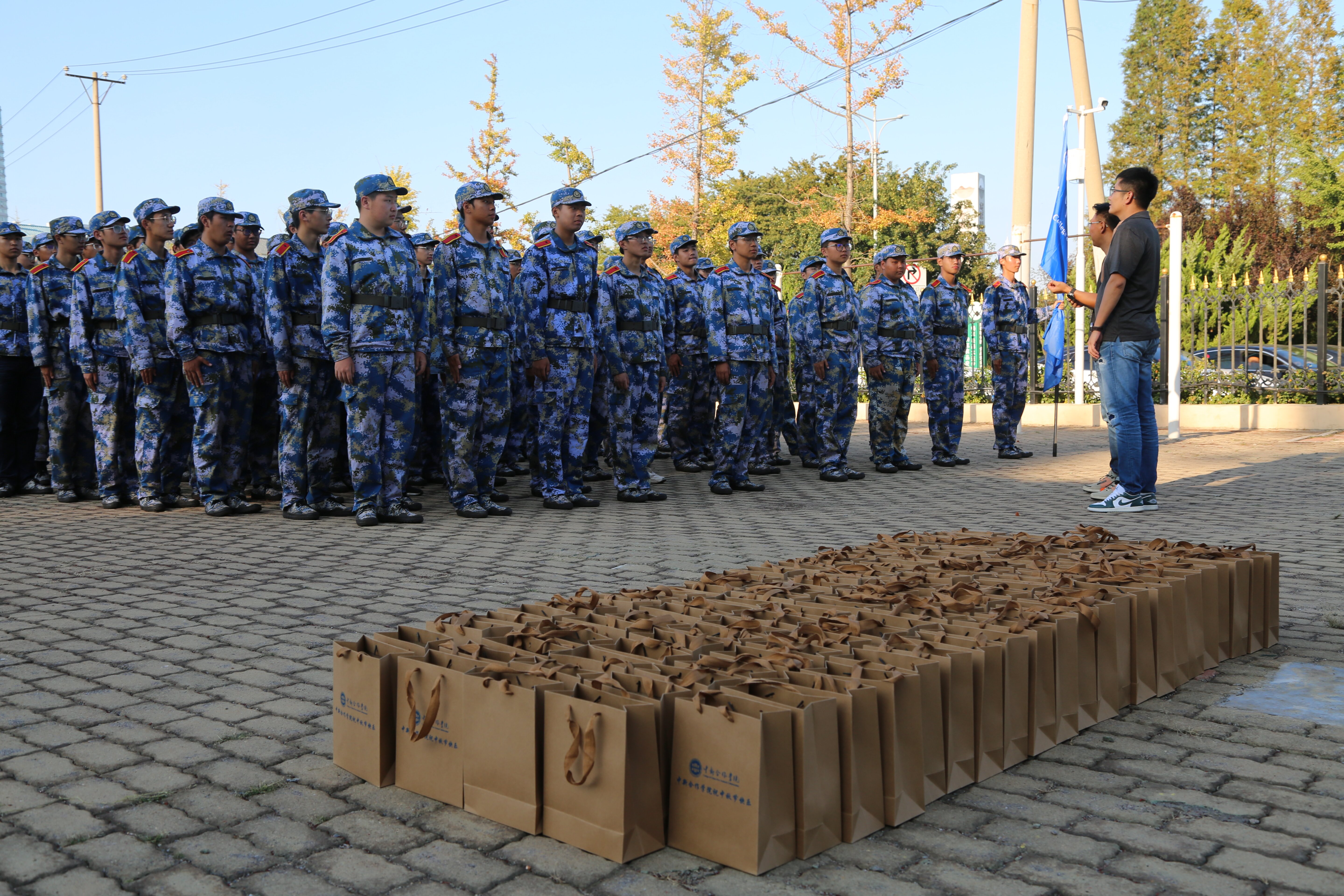 金秋九月,又逢一年中秋佳节之际,为了表达对新生的关怀与祝福,9月16日下午,公司经理高巍与新生辅导员刘伟健,一同前往军训场地,向正在紧张训练中的新生们送上了节日的问候及精心准备的月饼。