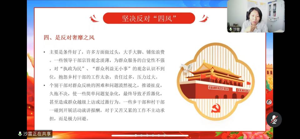 会上,张宁光和沙雷分别以“深化落实中央八项规定精神筑牢中外合作办学纪律根基”和“学习贯彻中央八项规定精神”为题分别为教工党员和员工党员讲授了专题党课。随后参会党员集体收看了2025年高公司党组织示范微党课展播第2讲《党的作风建设的主要内容》和第3讲《党的作风建设的高校实践》,并围绕“践行初心使命、聚力奋战攻坚”进行了交流研讨。